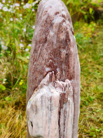 Master Potter Scott Currie’s Glazed Garden Rocks are large scale works, some as tall as 20 inches. They are collected in a variety of areas in Maine and New England including an old rock quarry in Auburn, ME the Bryant Pond ME area, the Bald Mountain area in Weld, ME, the Rangeley ME area and Slate Valley in Vermont.